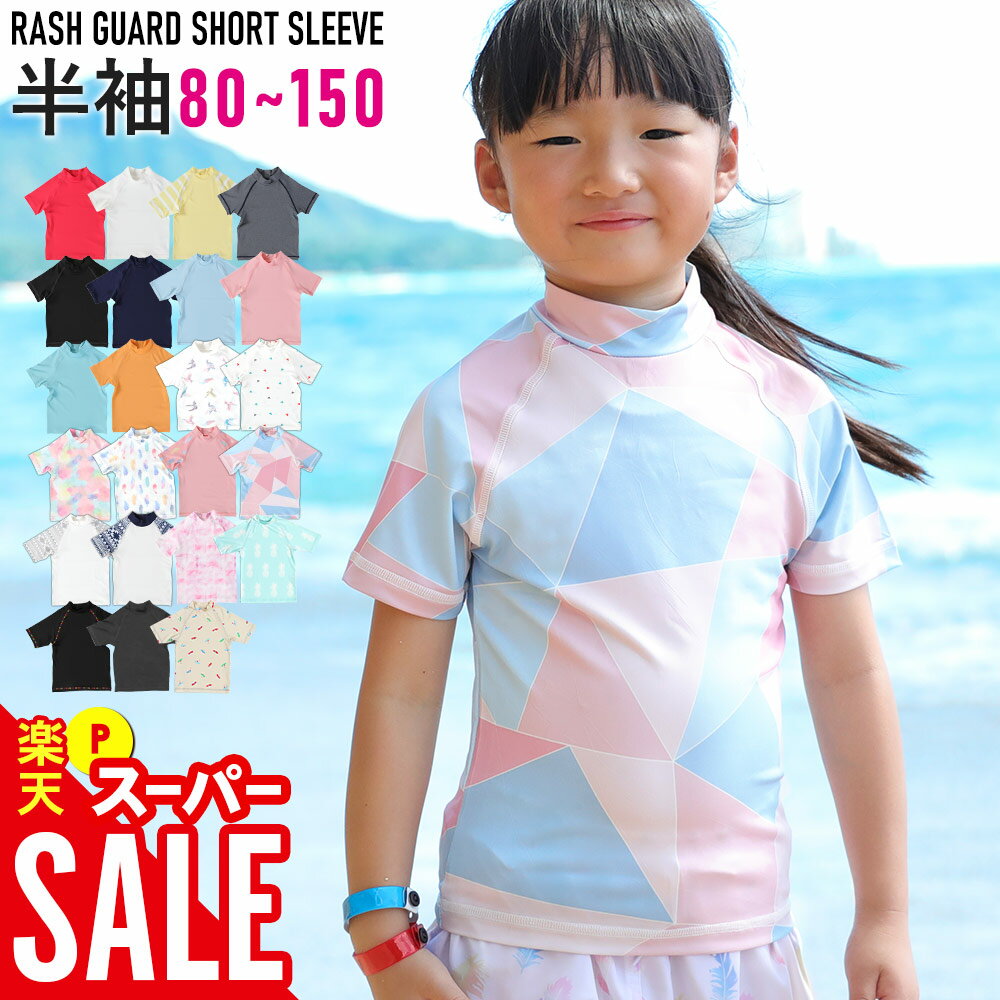 【クーポン配布中!】ラッシュガード キッズ 半袖 ラッシュトップス スタンドカラー 子供 UV98%カット UPF50+ ベビー 男の子 女の子 速乾 ストレッチ 80 90 100 110 120 130 140 150 cm
